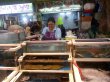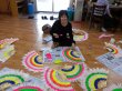 부채에 물감 입히고 있어요