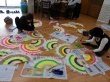 부채에 물감 입히고 있어요^^